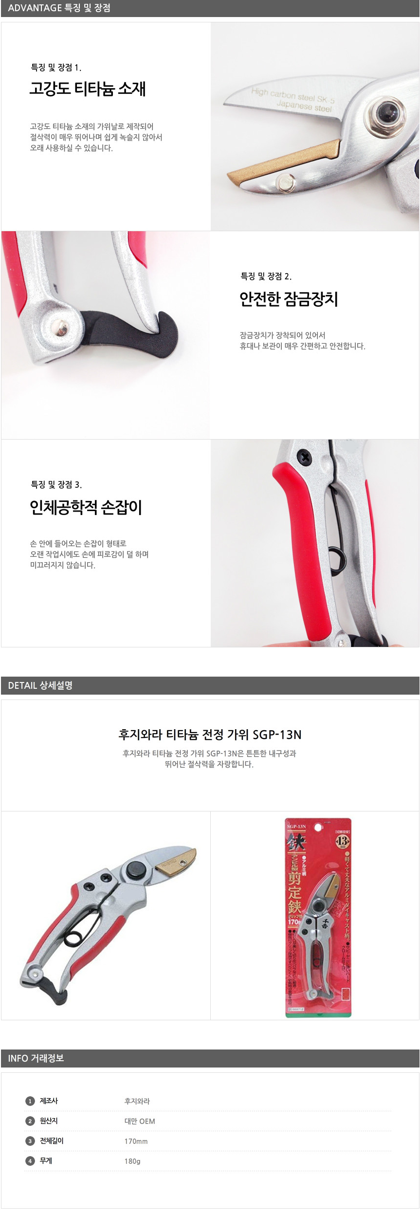후지와라 티타늄 전정 가위 SGP-13N