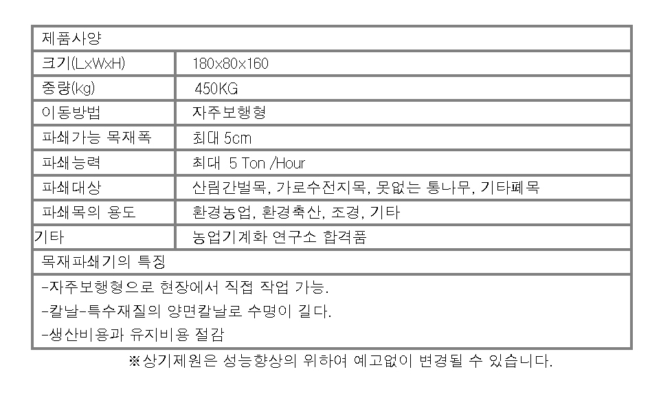 궤도 자주식 목재 파쇄기 PRJ-313ED- 농용 가솔린 엔진 및 클러치 장착- 지름 최대 6cm 파쇄가능- 유압구동방식으로 초보자도 쉽게 작업가능 (잔가지도 투입가능)- 이동식 궤도 보행가능- 중량 450KG (1톤트럭상차가능)