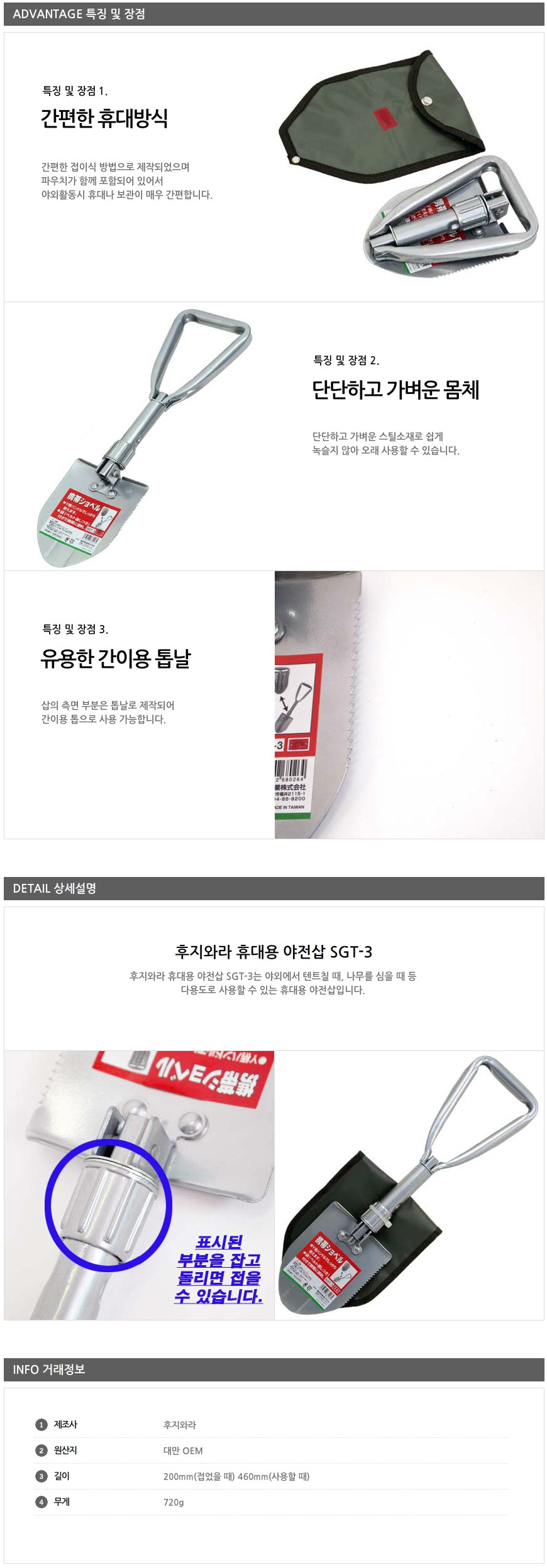 후지와라 휴대용 야전삽 SGT-3