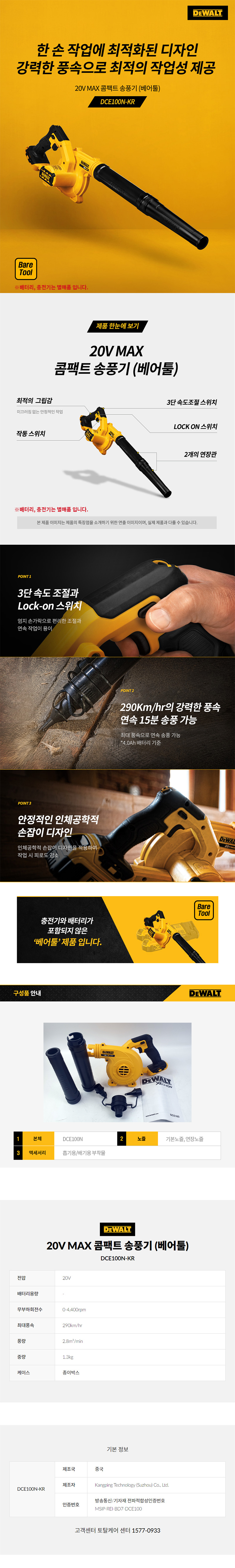 [디월트] 20V 충전 송풍기 DCE100N(본체)
