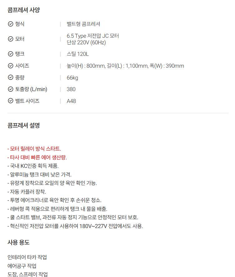 [제일타카] 스틸 콤프레샤 JCS70-120(6.5Hp)