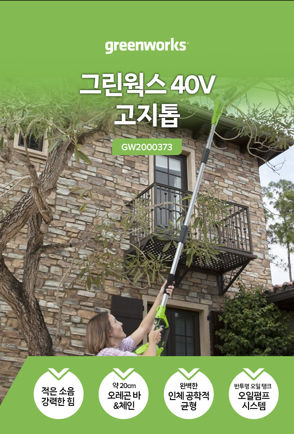 [그린웍스] 40V 충전고지톱 GW2000373(본체/배터리1팩/배터리2팩)