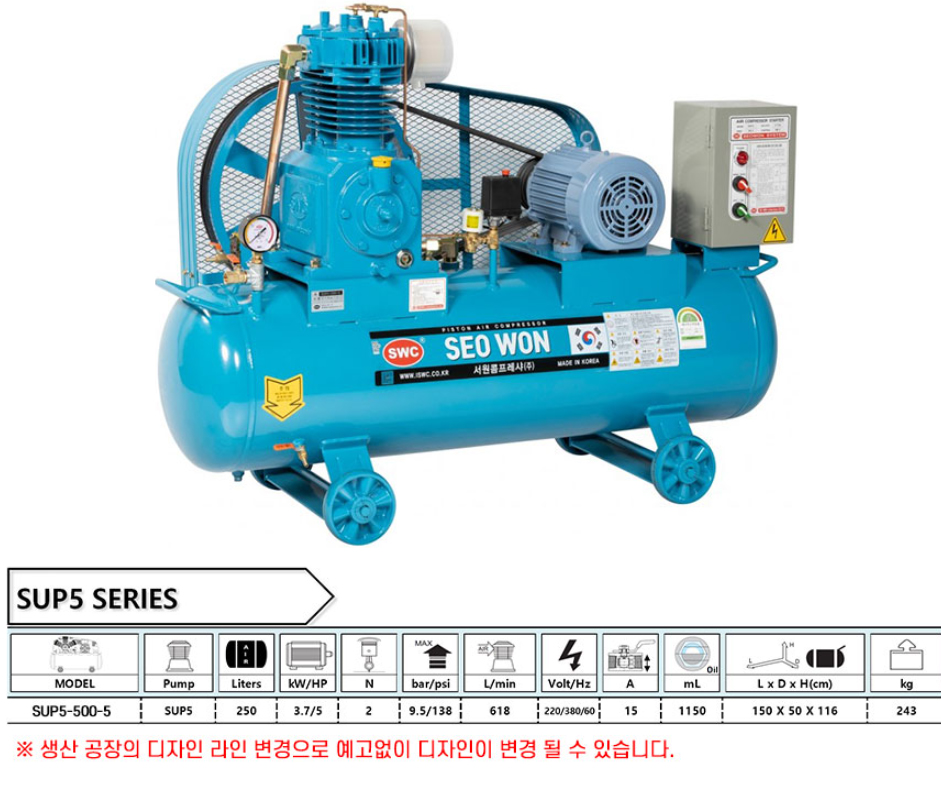 [서원] 산업용 고급형 5마력 콤프레샤 SUP5-500-5 (삼상)