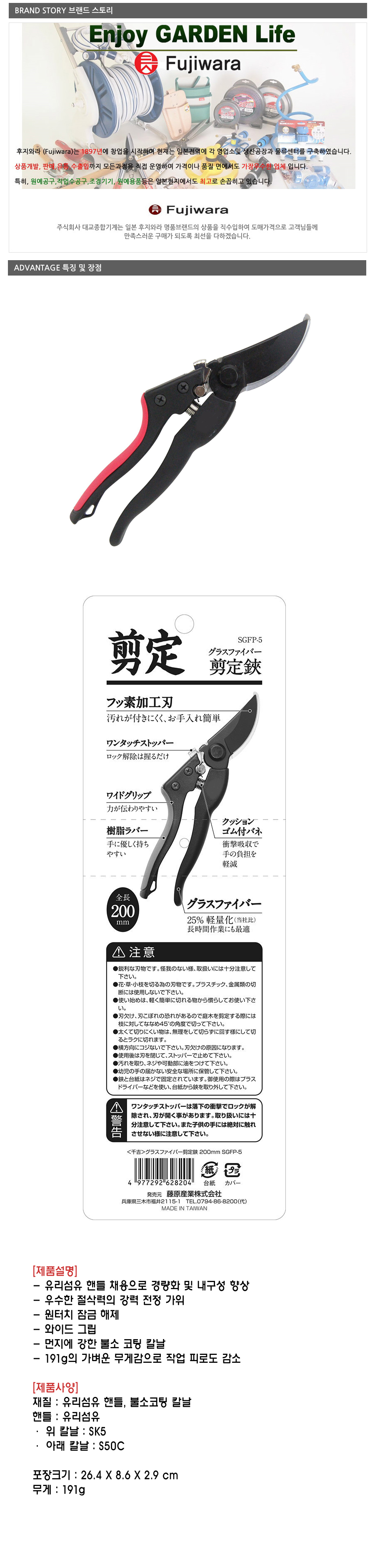 후지와라 초경량 전정 가위 200mm 와이드그립 SGFP-5
