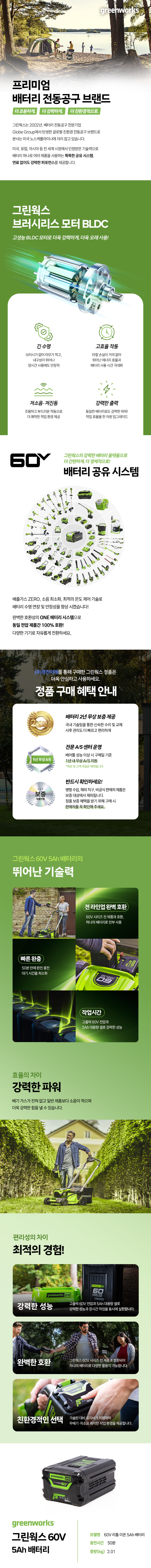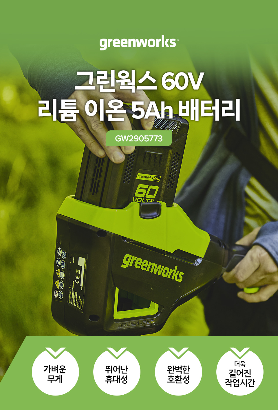 [그린웍스] 리튬이온 배터리GW2905773(60V/5.0Ah)