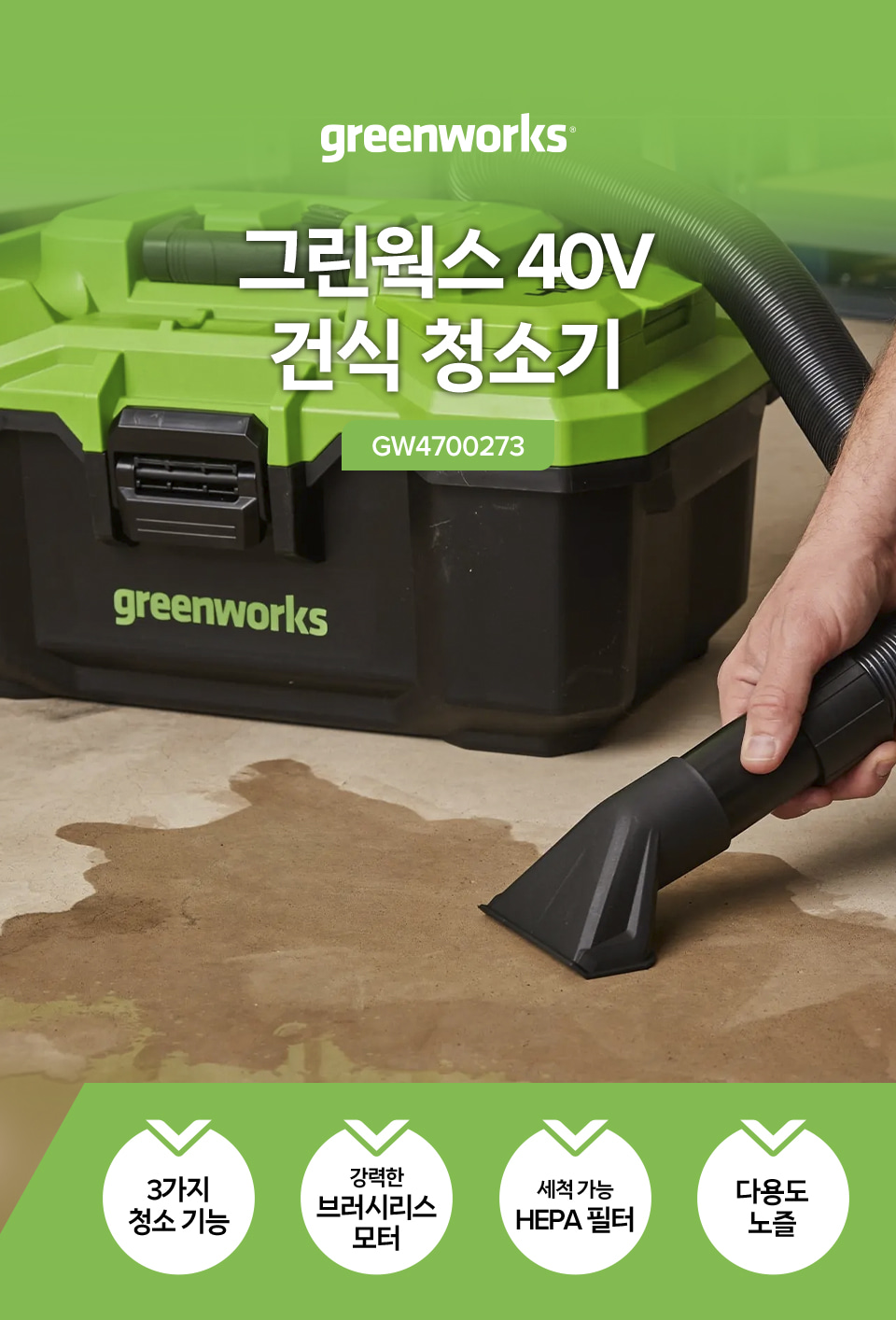 [그린웍스] 40V 건/습식 청소기 GW4700273(본체)
