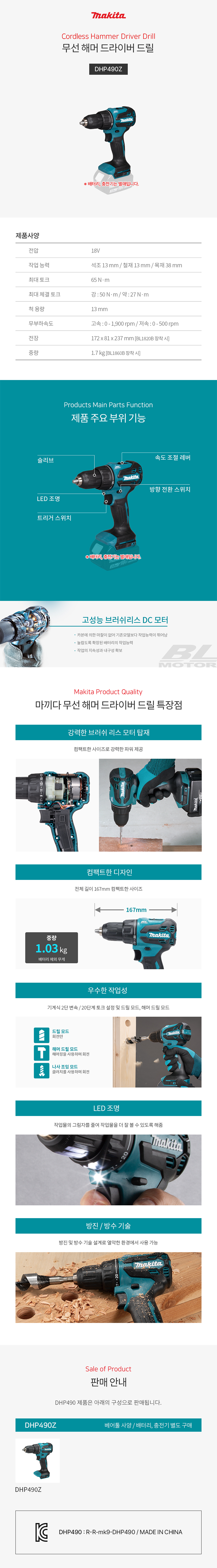 [마끼다]충전 햄머드릴 DHP490Z(본체)