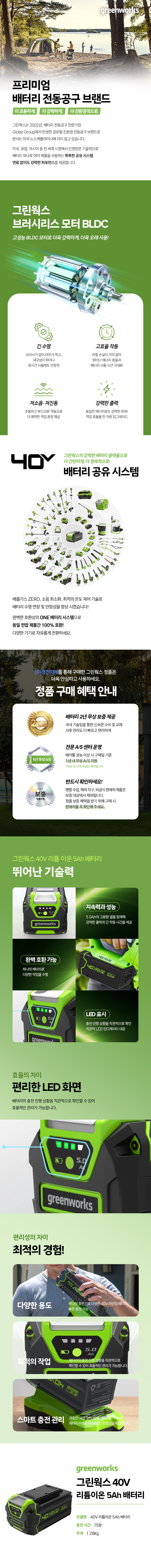 [그린웍스] 리튬 이온 배터리 GW2905573 (40V/5.0Ah)