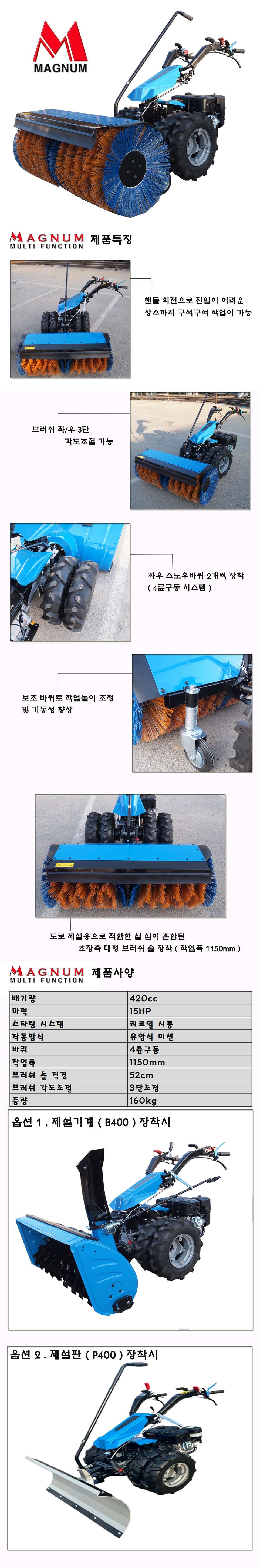 [매그넘]대형 광폭 4륜구동/유압식 제설브러쉬 MF400-S/15HP/작업폭115cm