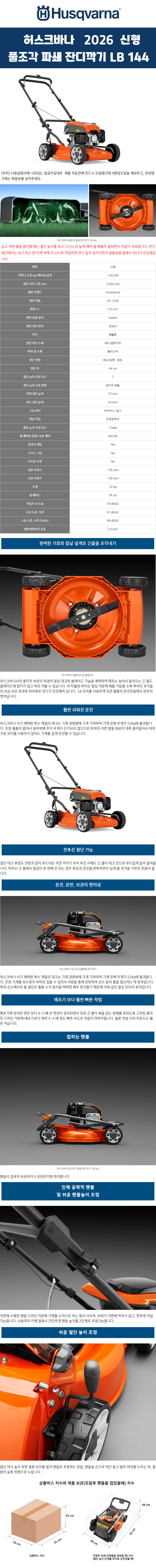 [허스크바나] 엔진 긴풀 분쇄 멀칭 잔디깎기 LB144