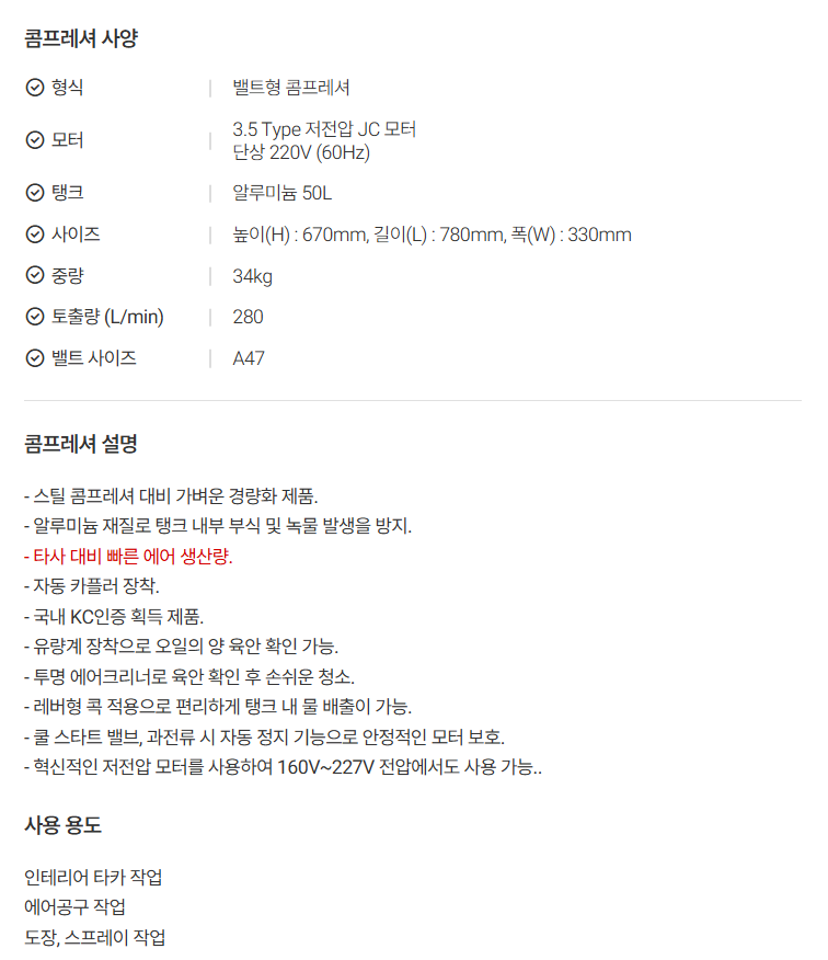 [제일타카] 알루미늄 경량형 콤프레샤 JCA40-50(3.5HP)