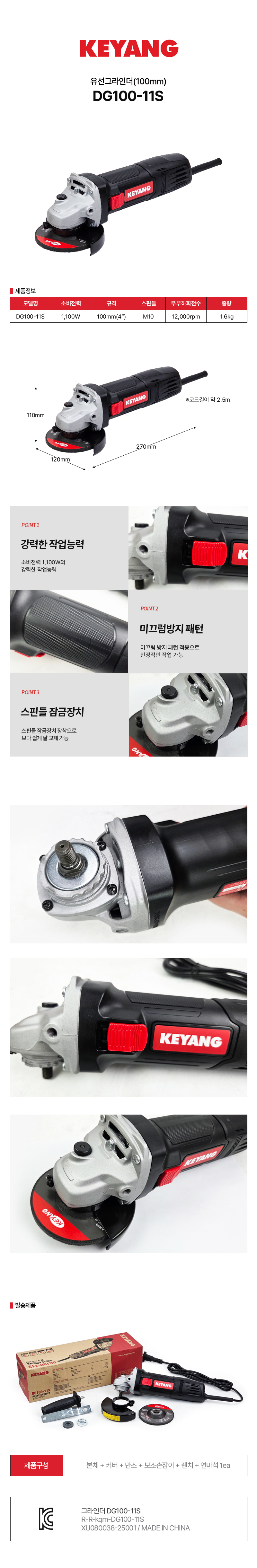 [계양] 유선 그라인더 DG100-11S (DG-100BM 후속모델)