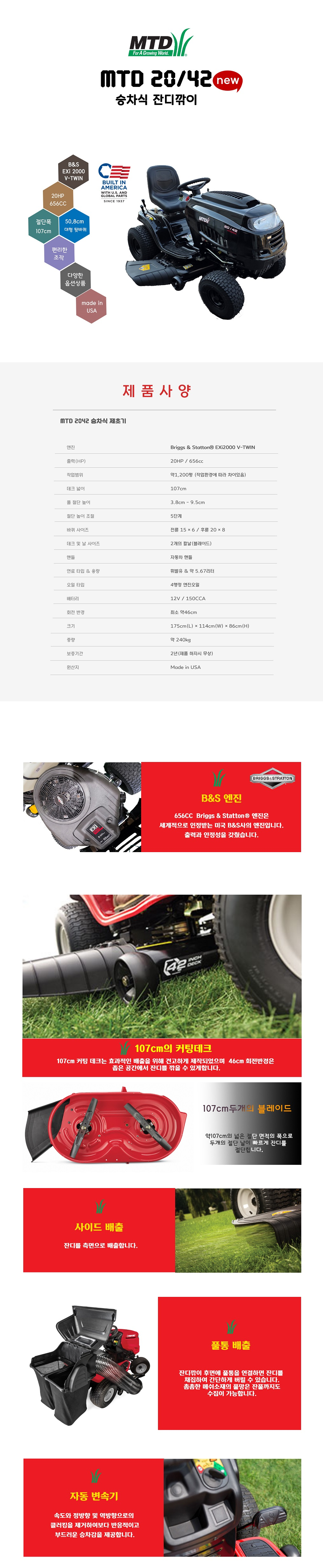 [트로이빌트] 승차식/승용식 잔디깍기 MTD 20/42/20Hp/42인치(107cm) (방수커버증정)