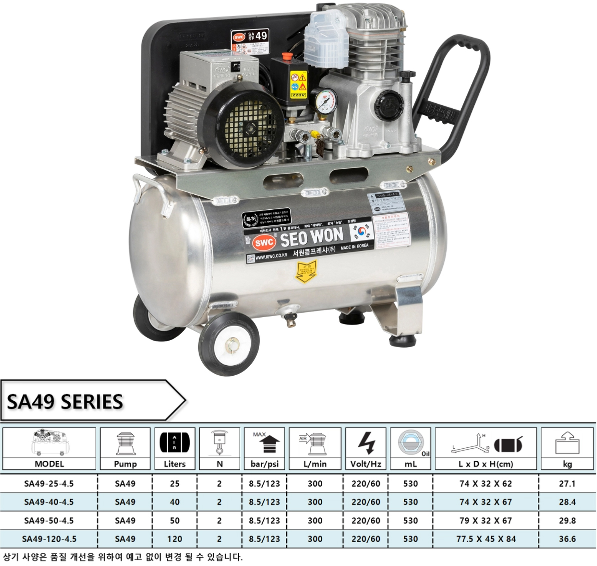 [서원] 알루미늄 탱크/초경량 콤프레샤 SA49-50-4.5