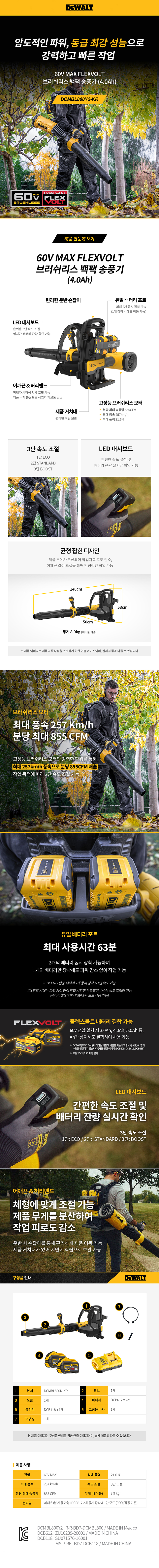 [디월트]충전 듀얼 백팩송풍기 DCMBL800Y2 (20V/4.0Ah)