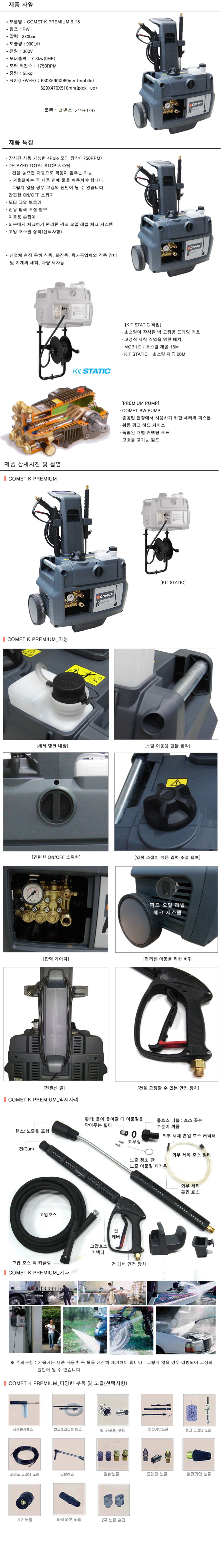 [코메트] 230bar/900ℓ/h 냉수 고압세척기 K PREMIUM 9.15