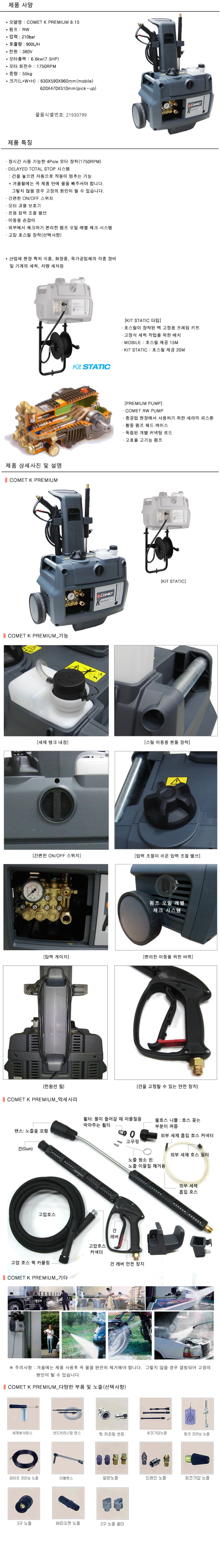 [코메트]210bar/냉수 고압세척기 K PREMIUM 8.15