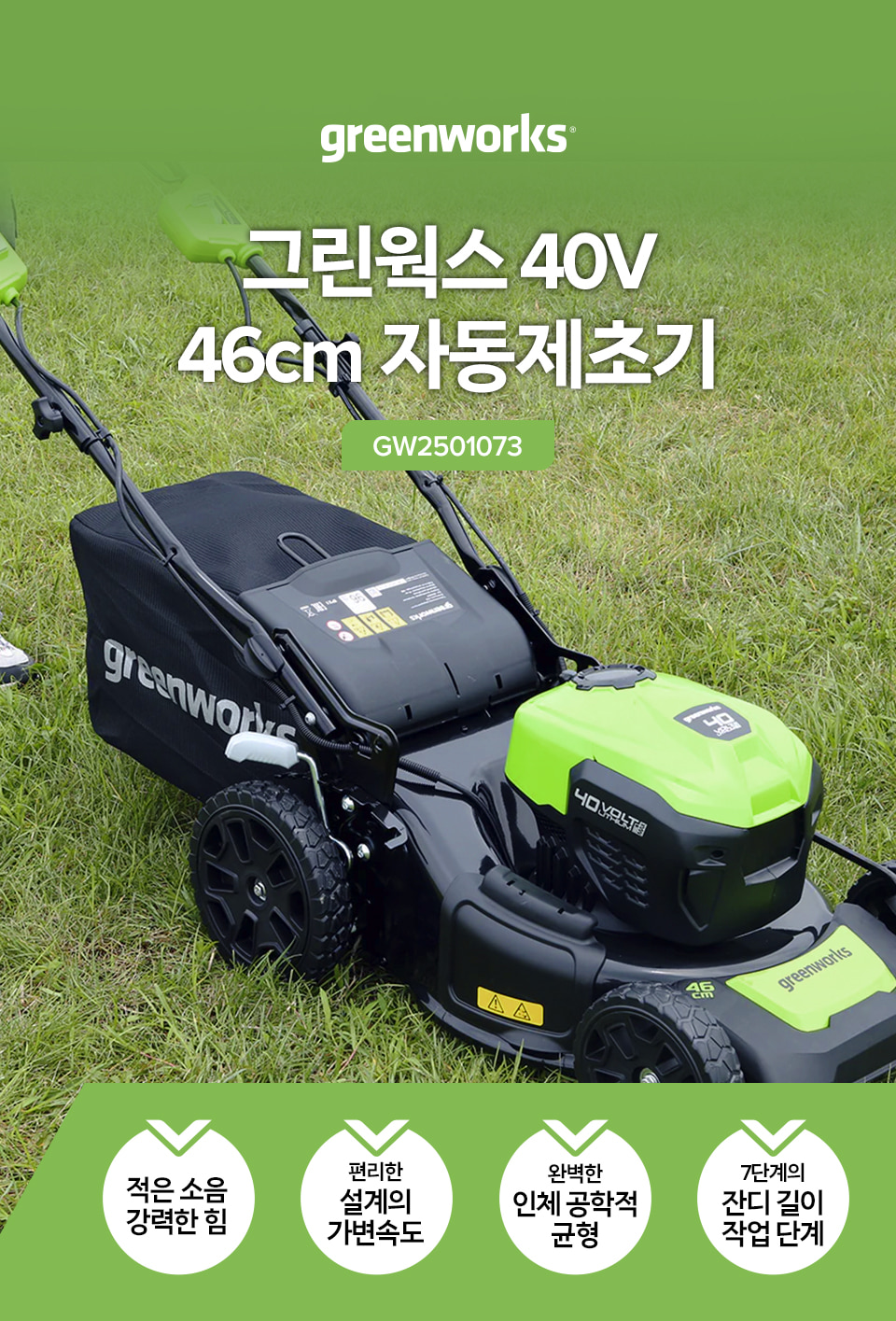 [그린웍스] 40V 자주식 듀얼 충전 제초기 GW2501073/18"(본체/배터리1팩/배터리2팩 선택옵션)