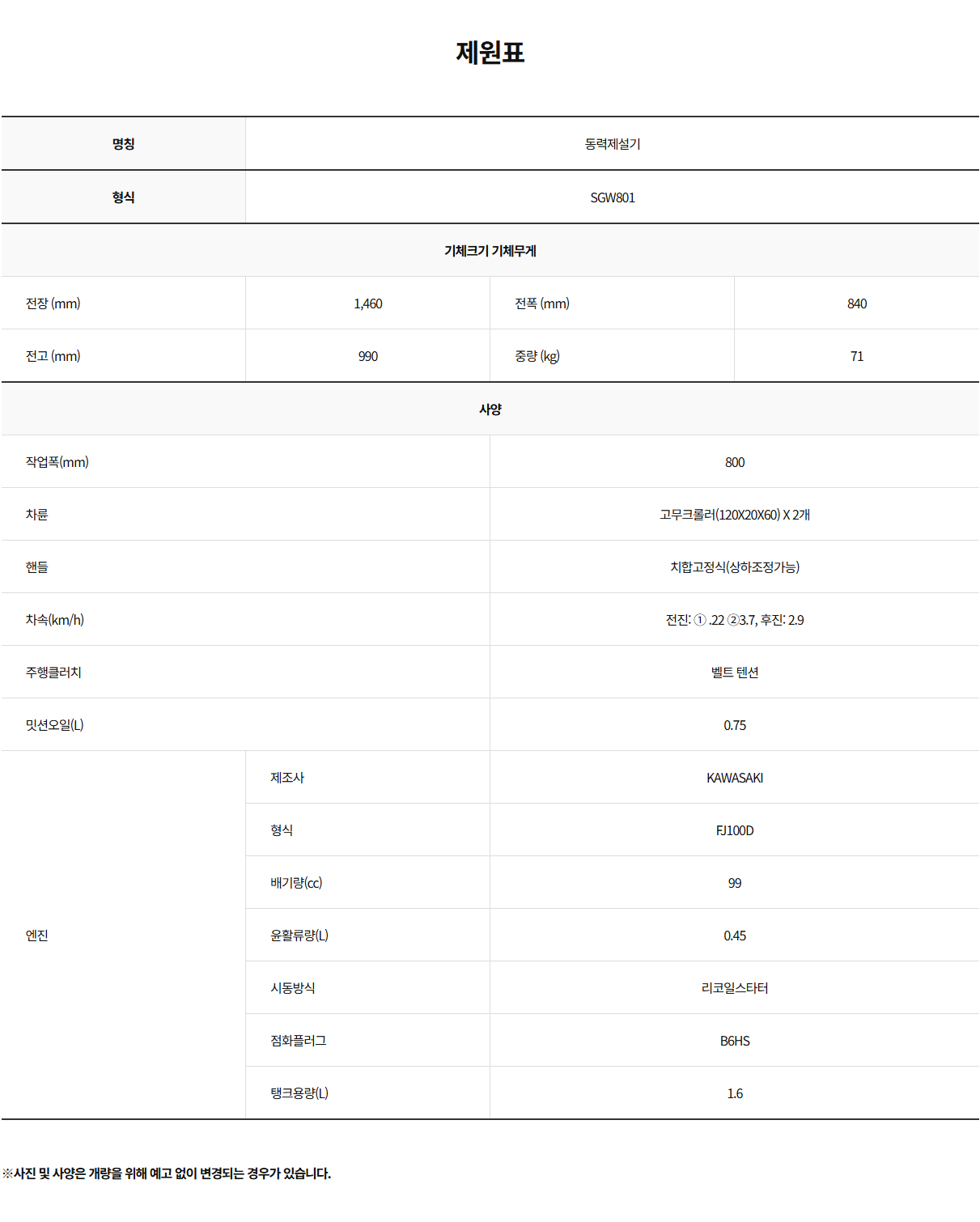 [오렉]일본완제품 궤도형 제설기/스노우그레이더/가와사키엔진/SGW801/K