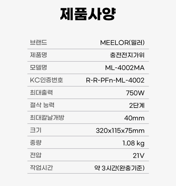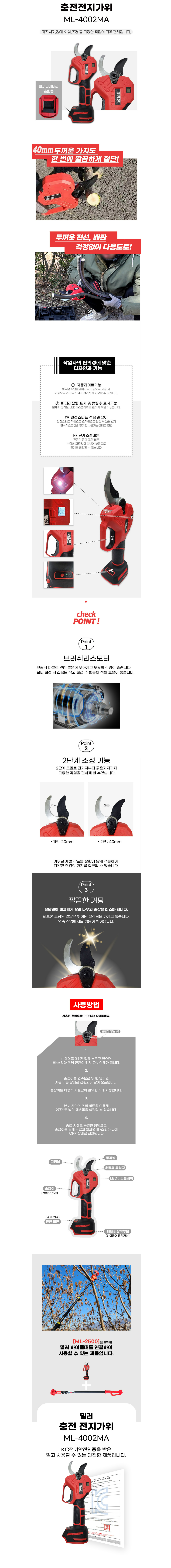 [밀러]충전 전지가위 ML-4002MA(21V/2.0Ah)-2팩 구성
