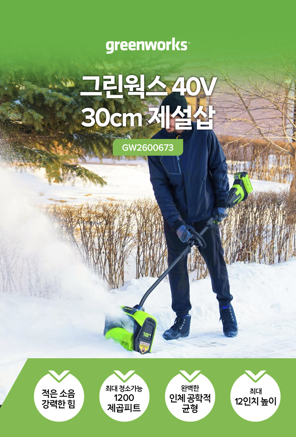 [그린웍스] 40V 충전식 제설삽 GW2600673 (본체/배터리1팩/배터리2팩 선택옵션)