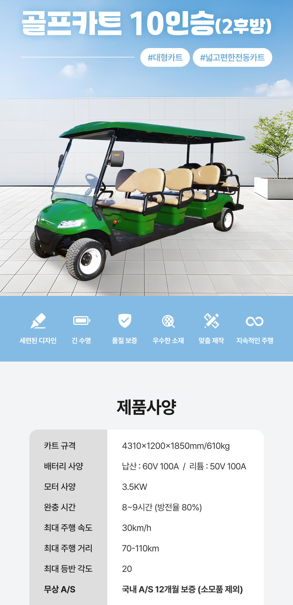 충전식 대형 골프카트 2후방/10인승(납산/리튬이온 배터리 옵션선택)