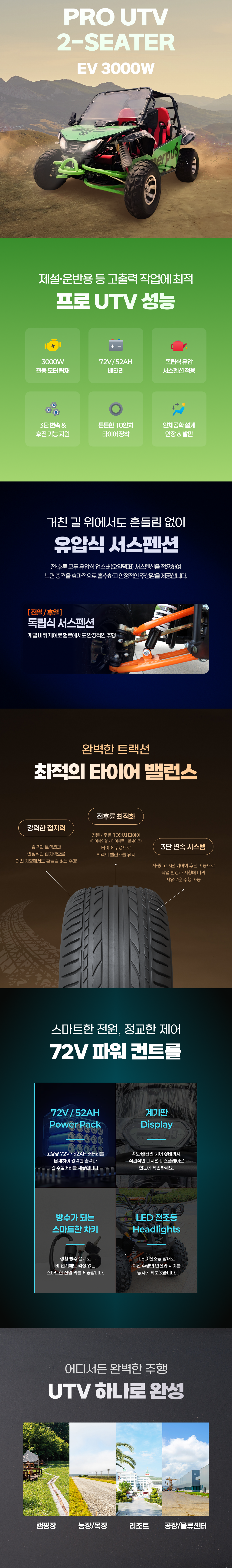 충전식 프로 전동 UTV 2인승 EV3000W (72V/52Ah)