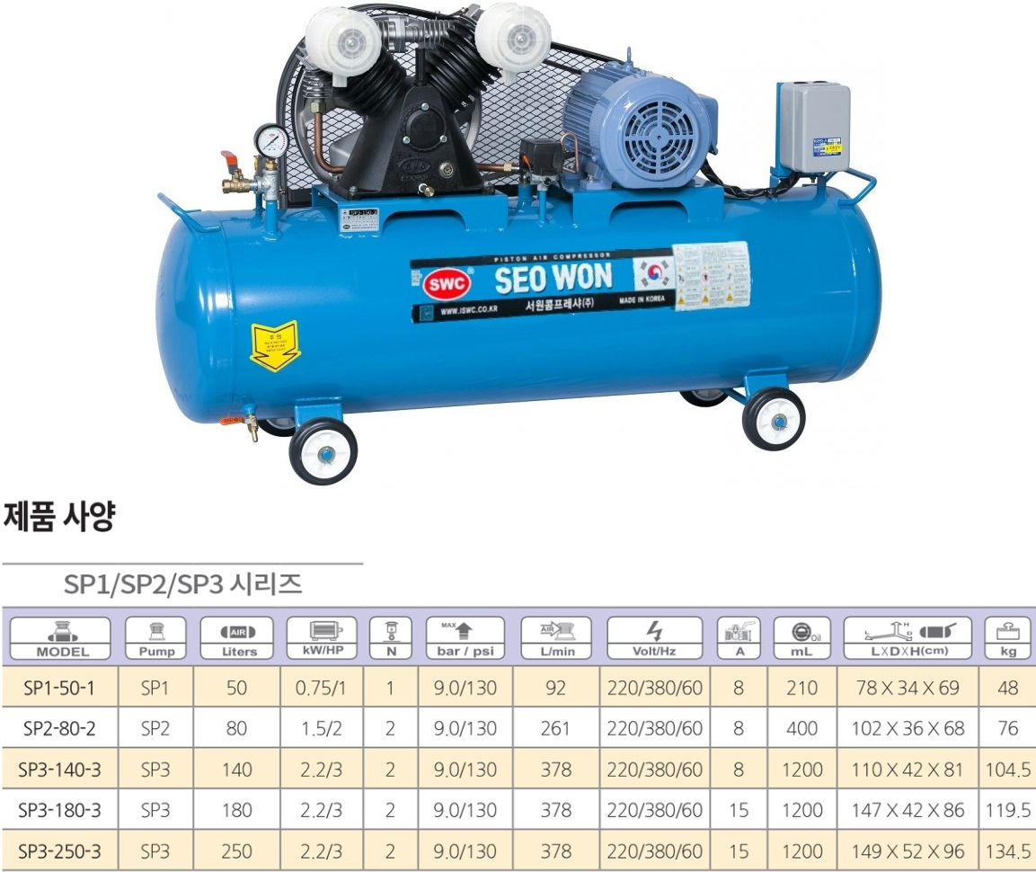 [서원] 산업용 3마력 콤프레샤 SP3-400-3 단상/삼상 (옵션선택)