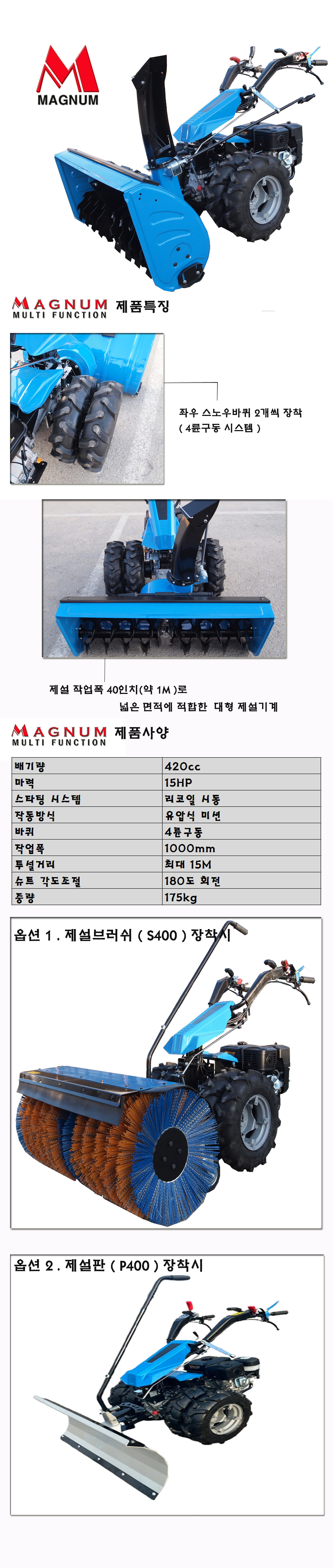 [매그넘] 대형 광폭 / 4륜구동/ 유압식 15HP 제설기(MF400-B)제설폭 100cm-