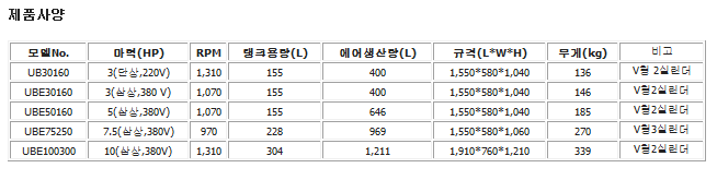 [유나이티드]공업용 콤프레샤-155L-3HP UBE30160-(삼상,380 V)