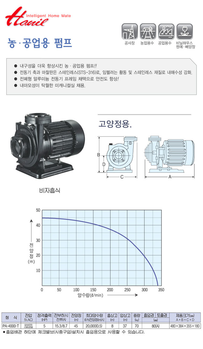 PA-1688-T (자흡식) 2HP 압상24m흡상 8m 3P 380V 50/50A