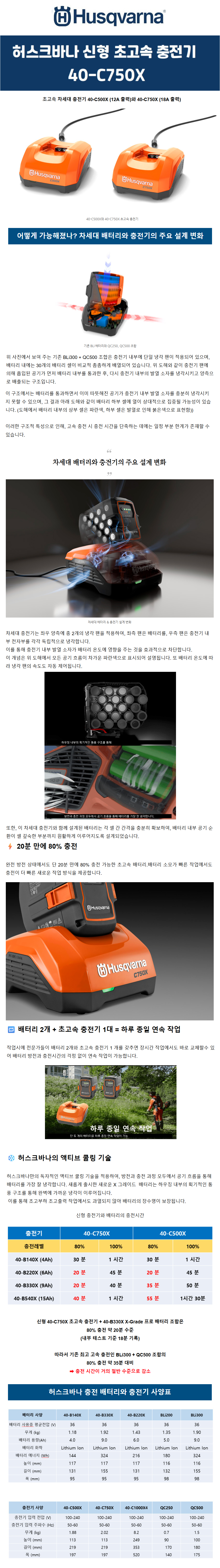 [허스크바나] 신형 초고속 충전기 40-C750X