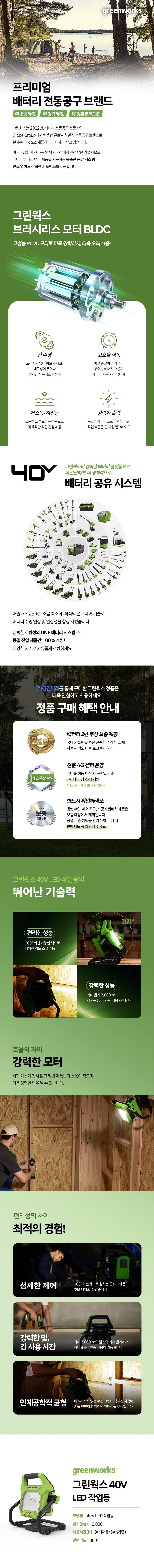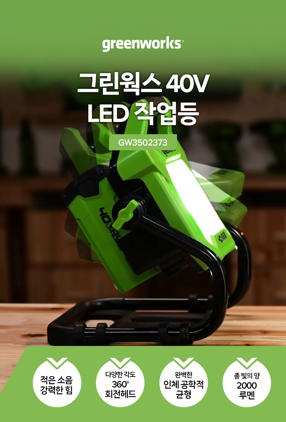 [그린웍스] 40V LED 작업등 GW3502373 (본체/배터리1팩/배터리2팩 선택옵션)