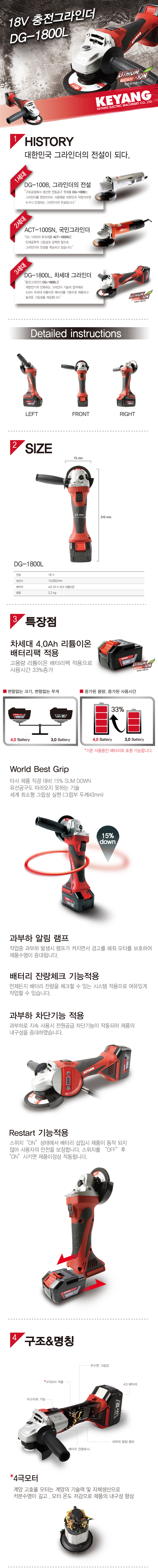 [계양] 콤보세트3(충전함마드릴+충전임팩드릴+충전그라인더+18V/4.0Ah 배터리 2개)