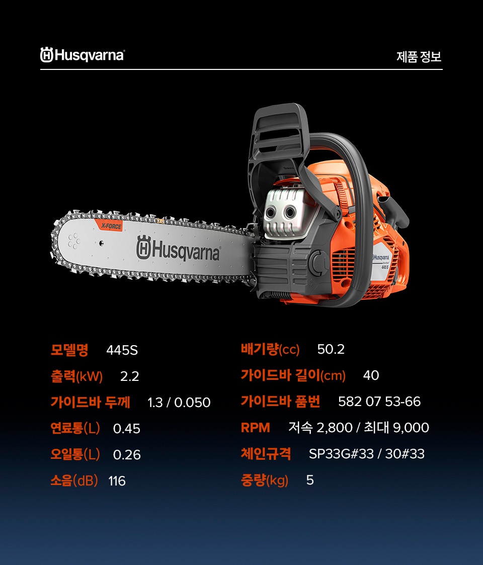 [허스크바나 ] 16" 엔진톱 445S/50.2cc(최신형모델)