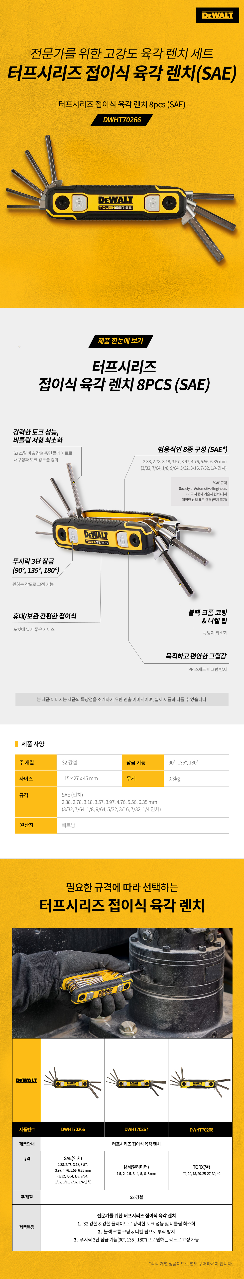 [디월트]터프시리즈 접이식 육각렌치 8pcs (SAE) DWHT70266