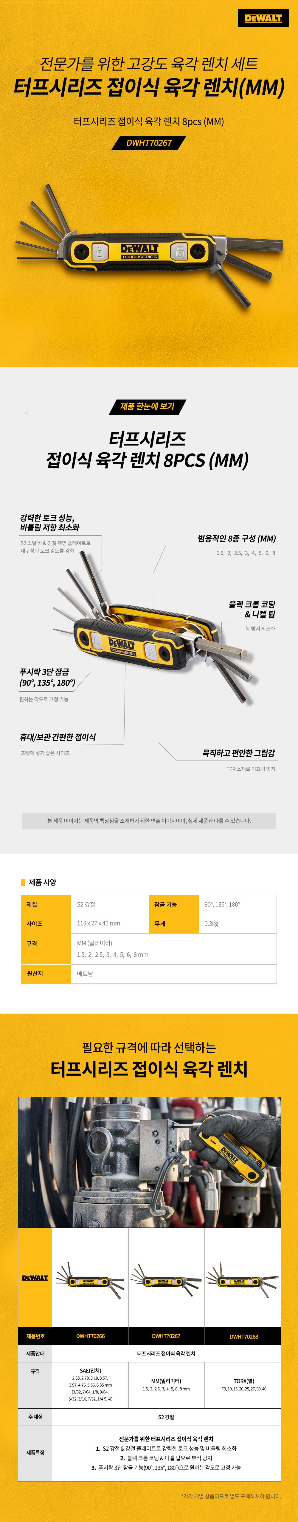 [디월트]터프시리즈 접이식 육각렌치 8pcs (MM) DWHT70267