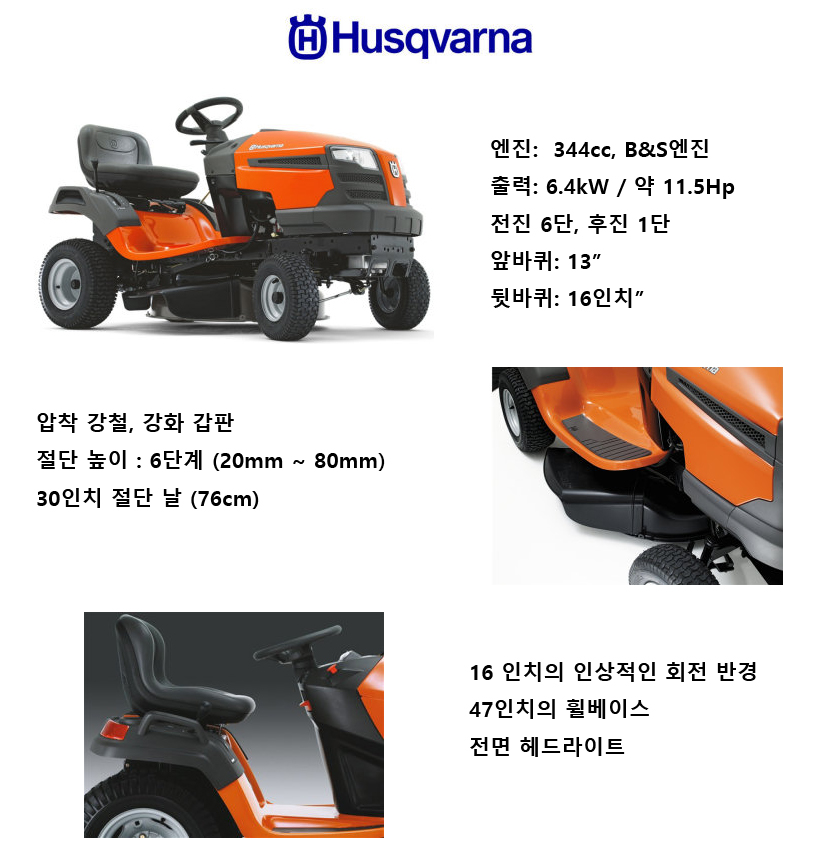 [허스크바나] 승차식/승용 잔디깍기 LT126/11.5마력/30인치/76cm(방수커버증정)