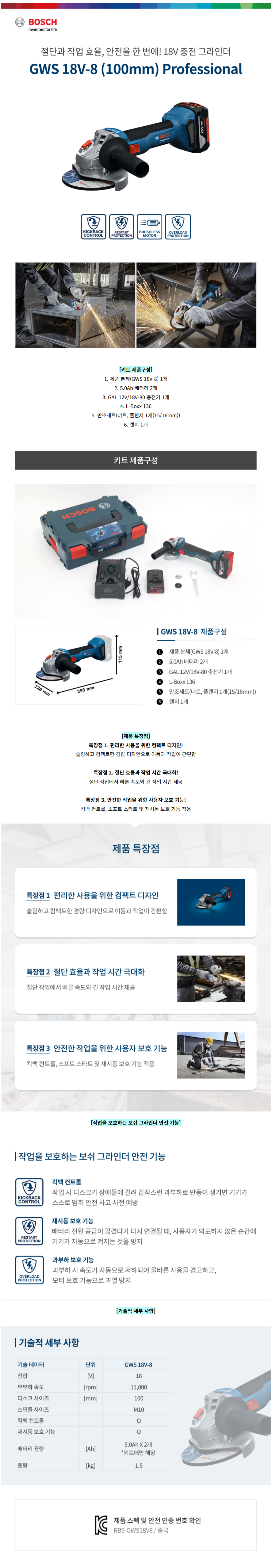 [보쉬] 충전 앵글 그라인더 GWS18V-8(18V/5.0Ah)