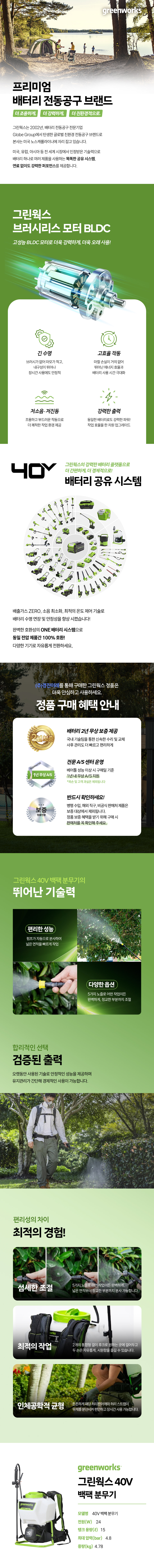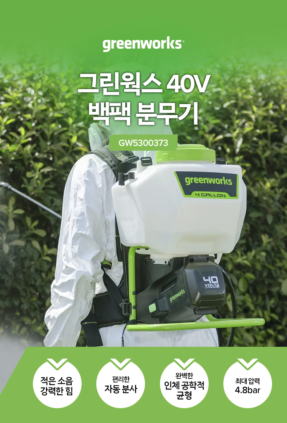 [그린웍스] 40V 백팩 충전 분무기 GW5300373 (배터리 5.0Ah 1+고속충전기)