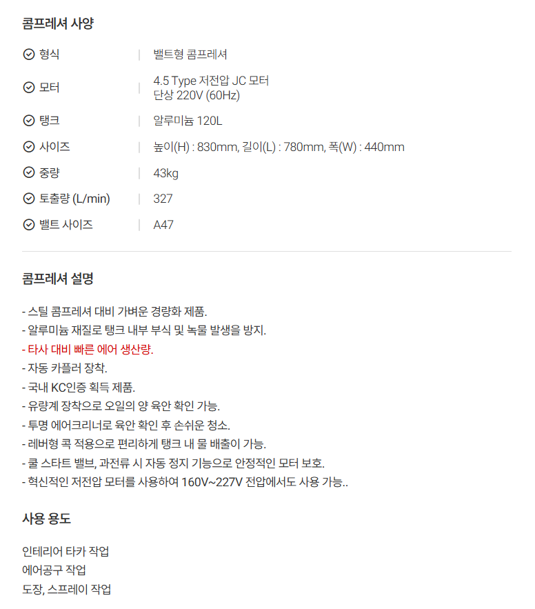[제일타카] 경량형 콤프레샤 JCA50-120(4.5Hp)