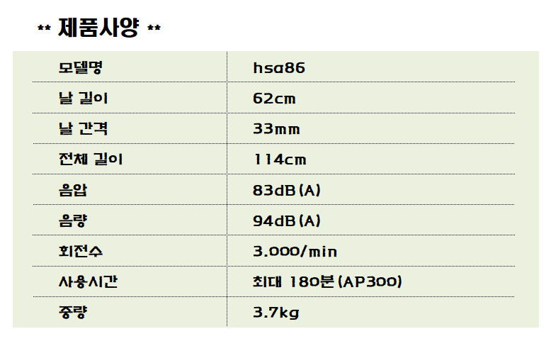 [스틸] 36V 충전식 전정기 HSA 86(620mm)-1팩 구성