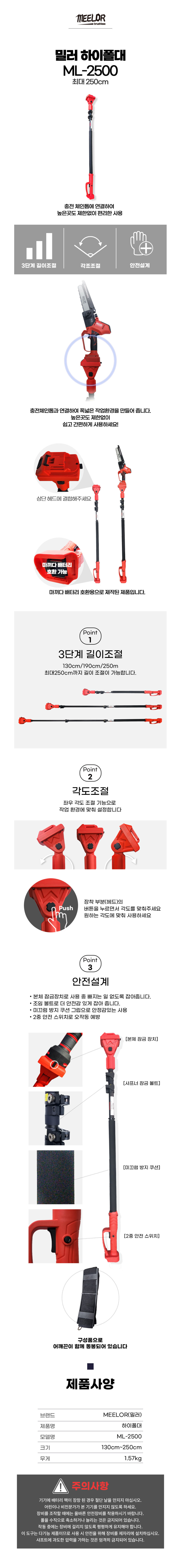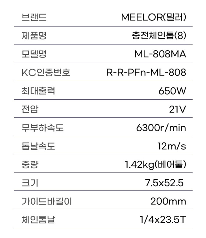 [밀러] 18V 충전 체인톱 ML-808MA/8"(18V/4.0Ah)-2팩 구성