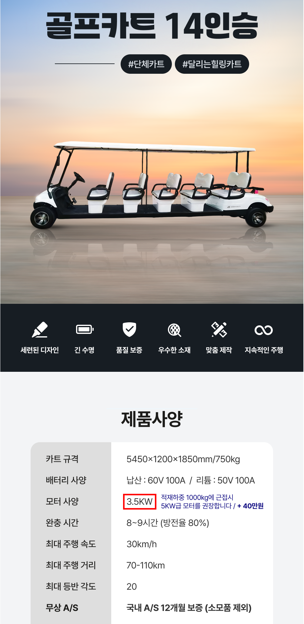 충전식 단체 골프카트 14인승 (납산/리튬이온 배터리 옵션선택)