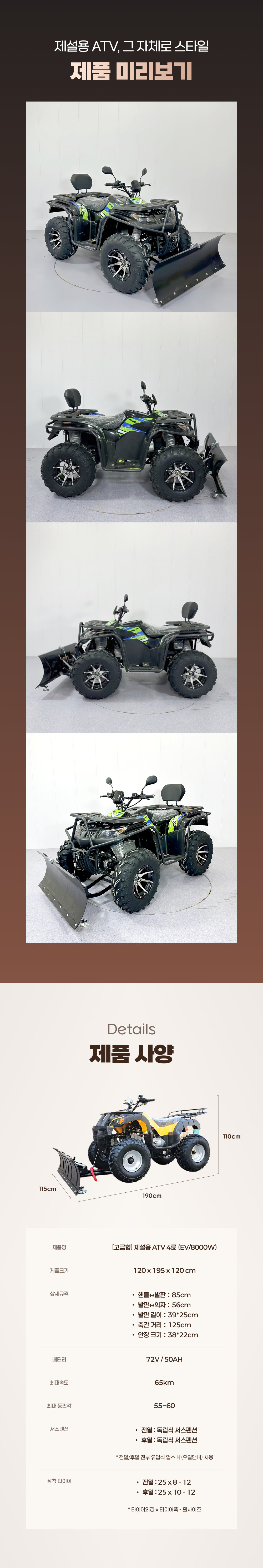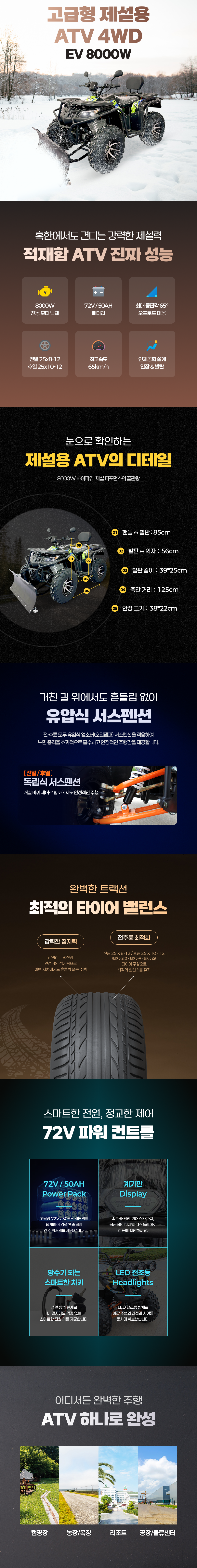 충전식 전동 ATV 4륜 구동 제설차량 EV8000W/4WD (72V/50Ah)