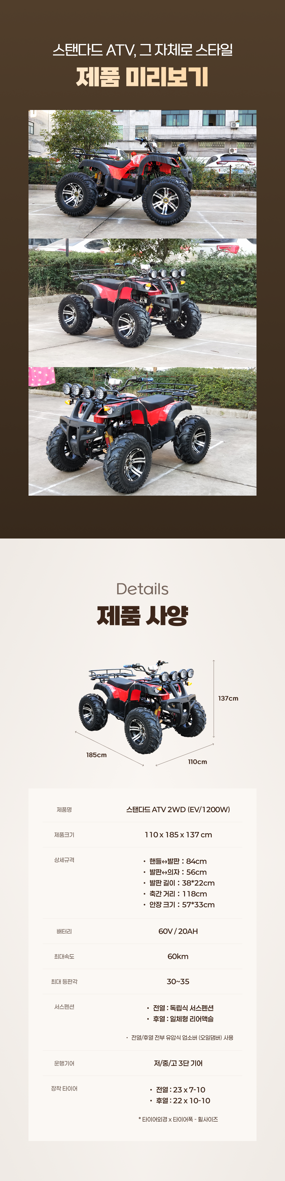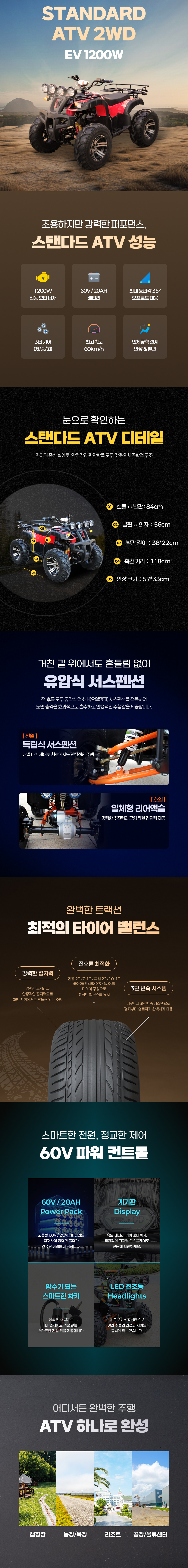 충전식 스탠다드 전동 ATV 2륜구동 EV1200W/2WD (60V/20Ah)